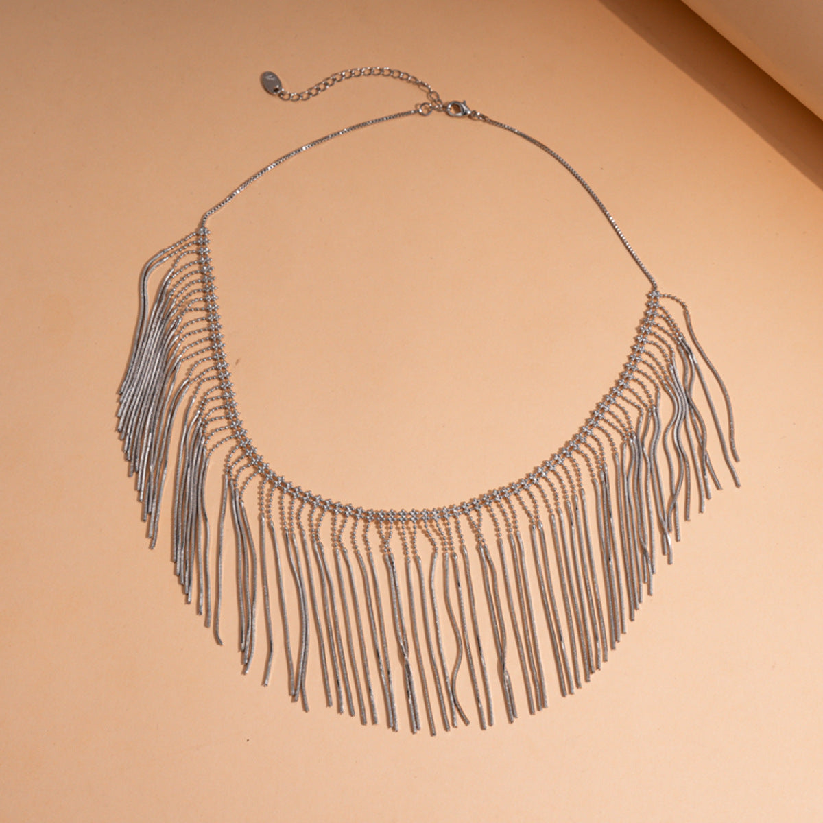 This tassel necklace embodies contemporary elegance with a touch of bohemian allure. Layer it over simple silhouettes for instant drama or wear it as the centerpiece of your evening ensemble.An unforgettable gift for birthdays, anniversaries, or as a striking addition to any jewelry collection. Let the rhythmic movement of the fringe tell a story of confidence, grace, and impeccable style.