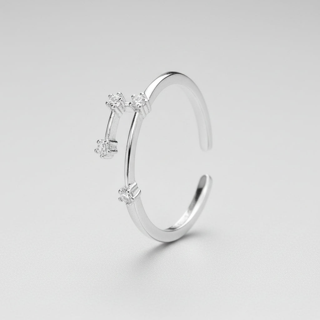 Silver Zodiac Constellation Ring – CZ Star Sign Adjustable Cuff