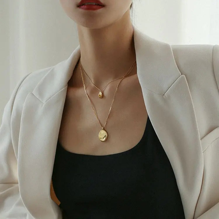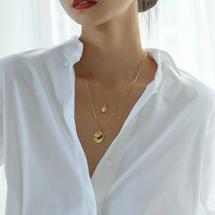 The imperfect, hand-hammered finish gives each piece a unique, artisanal feel – lightweight, adjustable length, hypoallergenic, tarnish-resistant, and perfect for sensitive skin. Ideal for everyday elegance, layering with other dainty chains, office chic, casual blazers, or as a versatile 2026 staple for understated statement jewelry. Sold as single pendant necklace (layering shot shows stacking potential). 1 necklace. Simple. Sculptural. Timeless. ✨